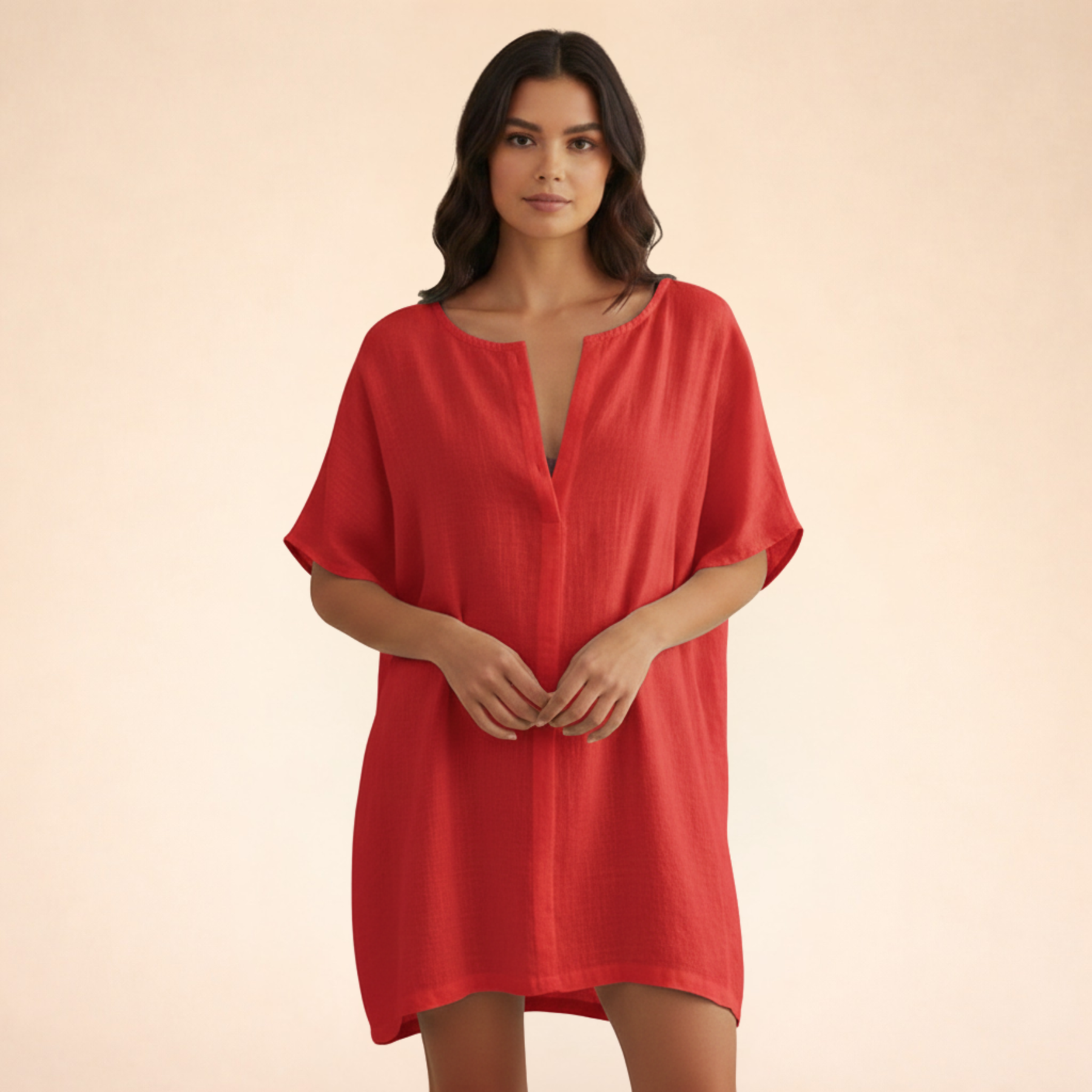 Vivi l'estate perfetta con l'abito in cotone Anna. Questo abito è progettato per offrirti comfort e freschezza durante le calde giornate estive. Con il suo design leggero e confortevole, è la scelta ideale per ogni occasione, che si tratti di una giornata al parco o di una serata con gli amici.