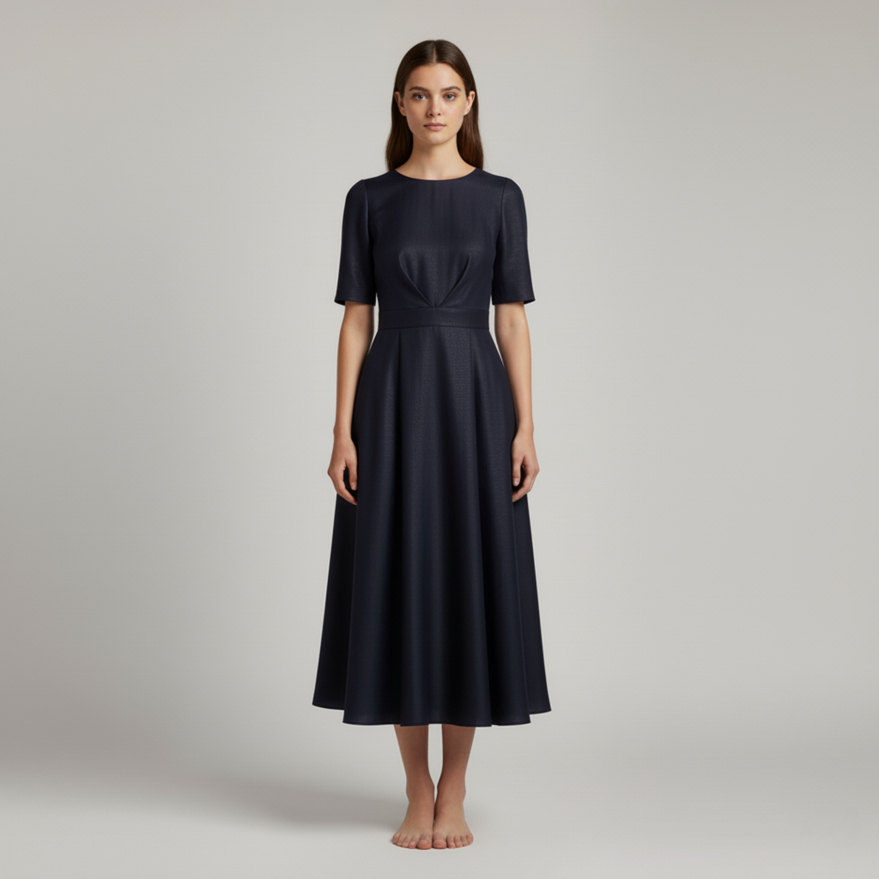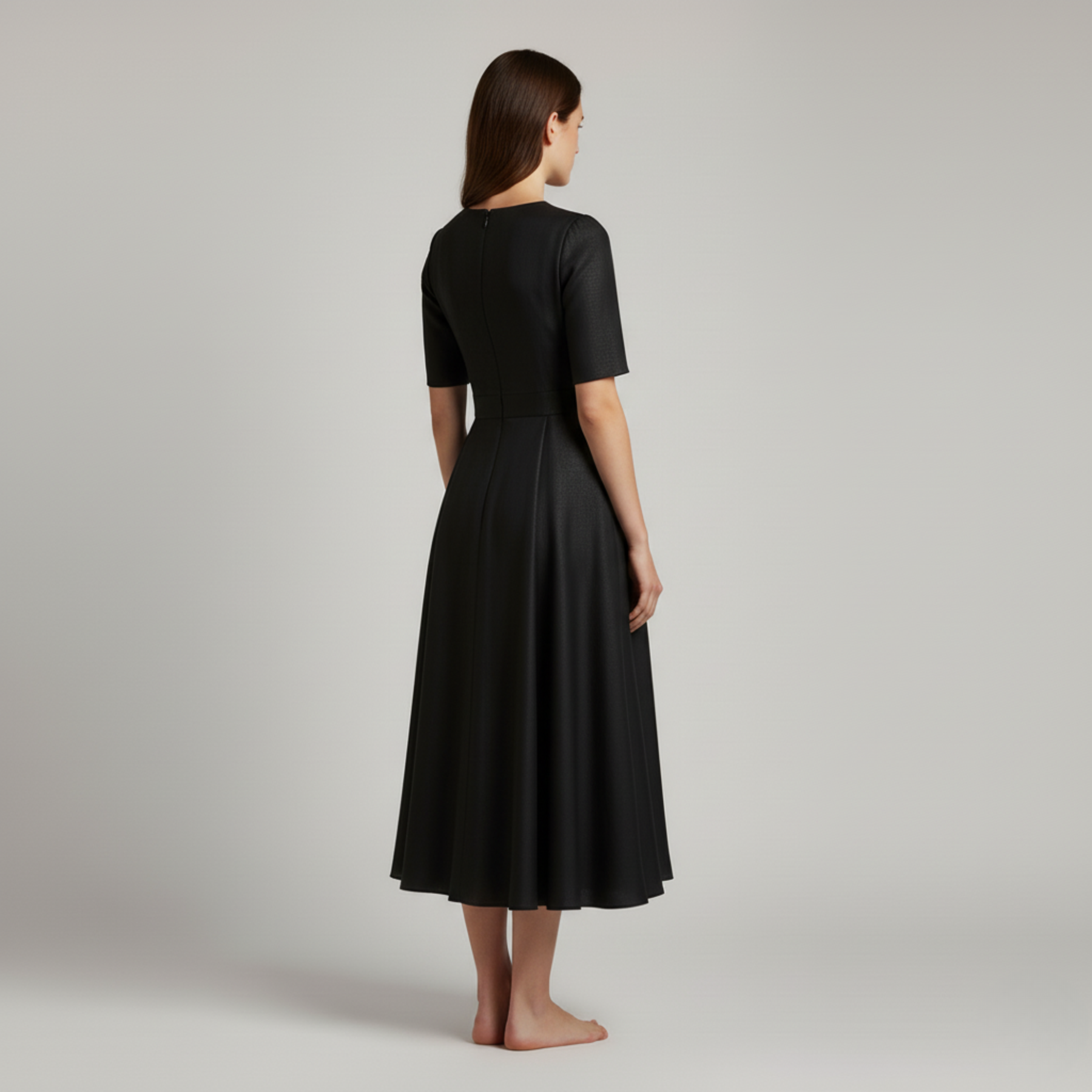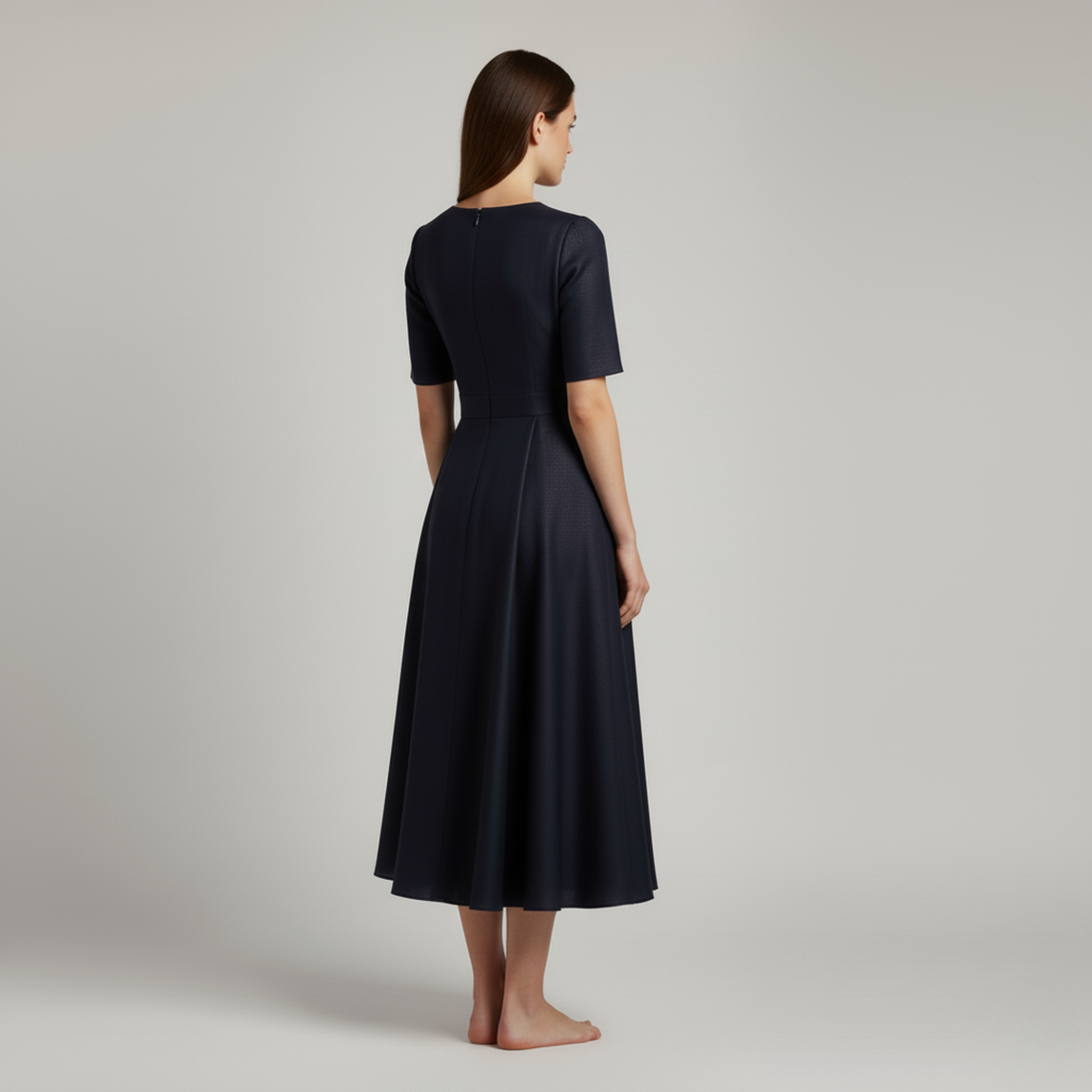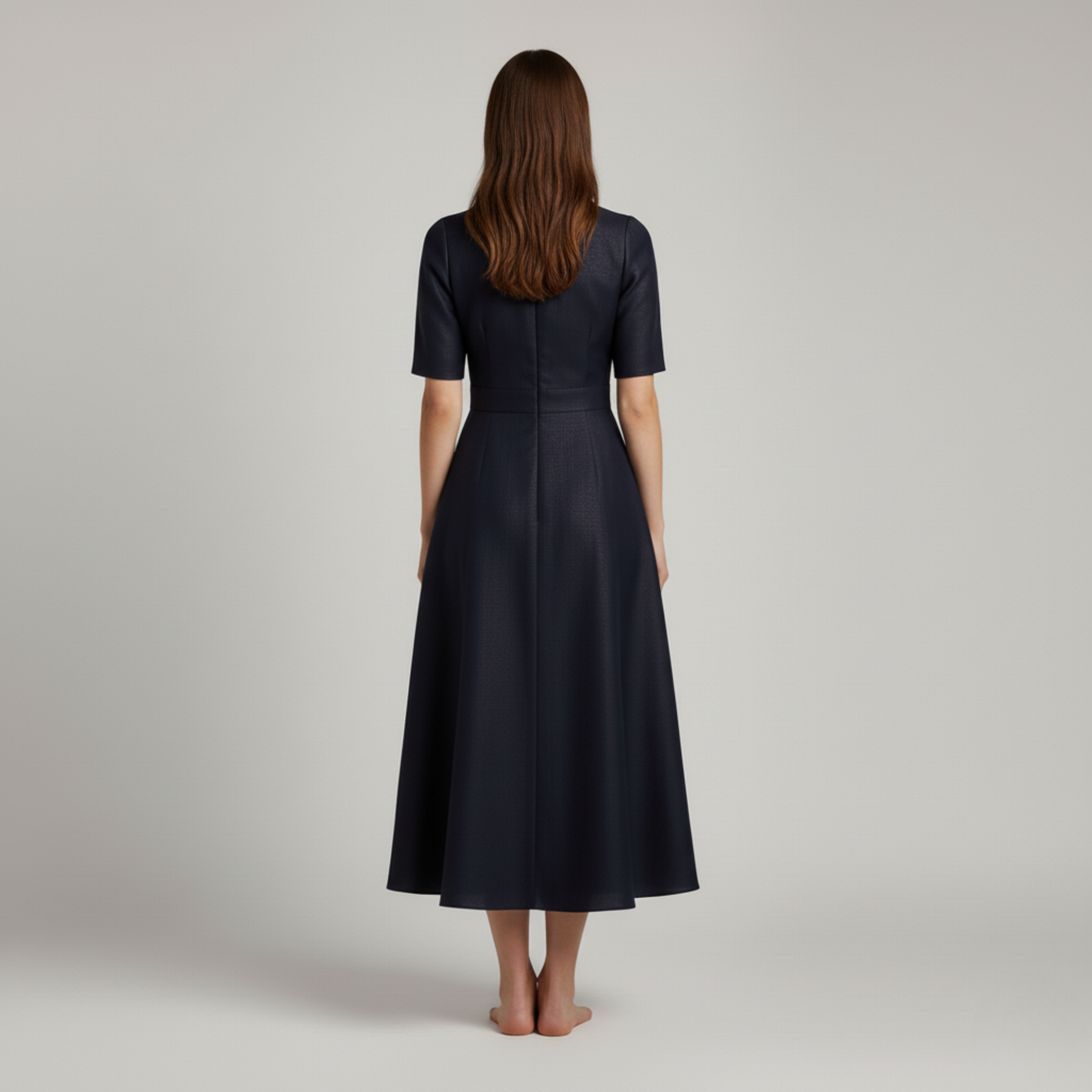 Taglio midi elegante che valorizza la silhouette con fluidità e stile.